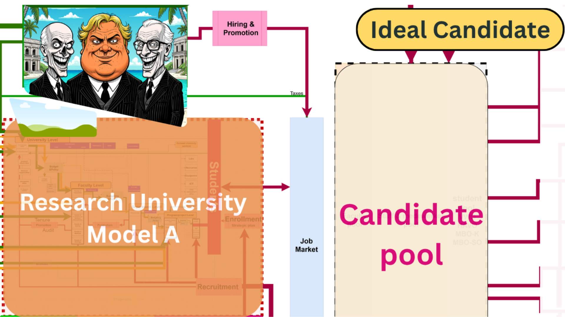 This is an analysis of power. It’s a map of how the Dutch higher education system is engineered, who it is designed for, and who it systematically filters out. Using a model (A) Dutch research University with centralized nested structure as a starting point, we will trace the three primary flows that animate this structure: the flow of funds, the flow of policy, and the flow of people. We will see how these flows merge into a single, powerful current that directs knowledge production toward certain ends and away from others. Furthermore, we will follow the path to a hypothetical post-doctoral position, witnessing how intersectional marginalization creates a compounding web of hurdles that makes this path a near-impossibility for many.